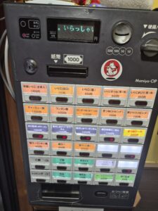 ・入口に食券、対角にセルフの水あり